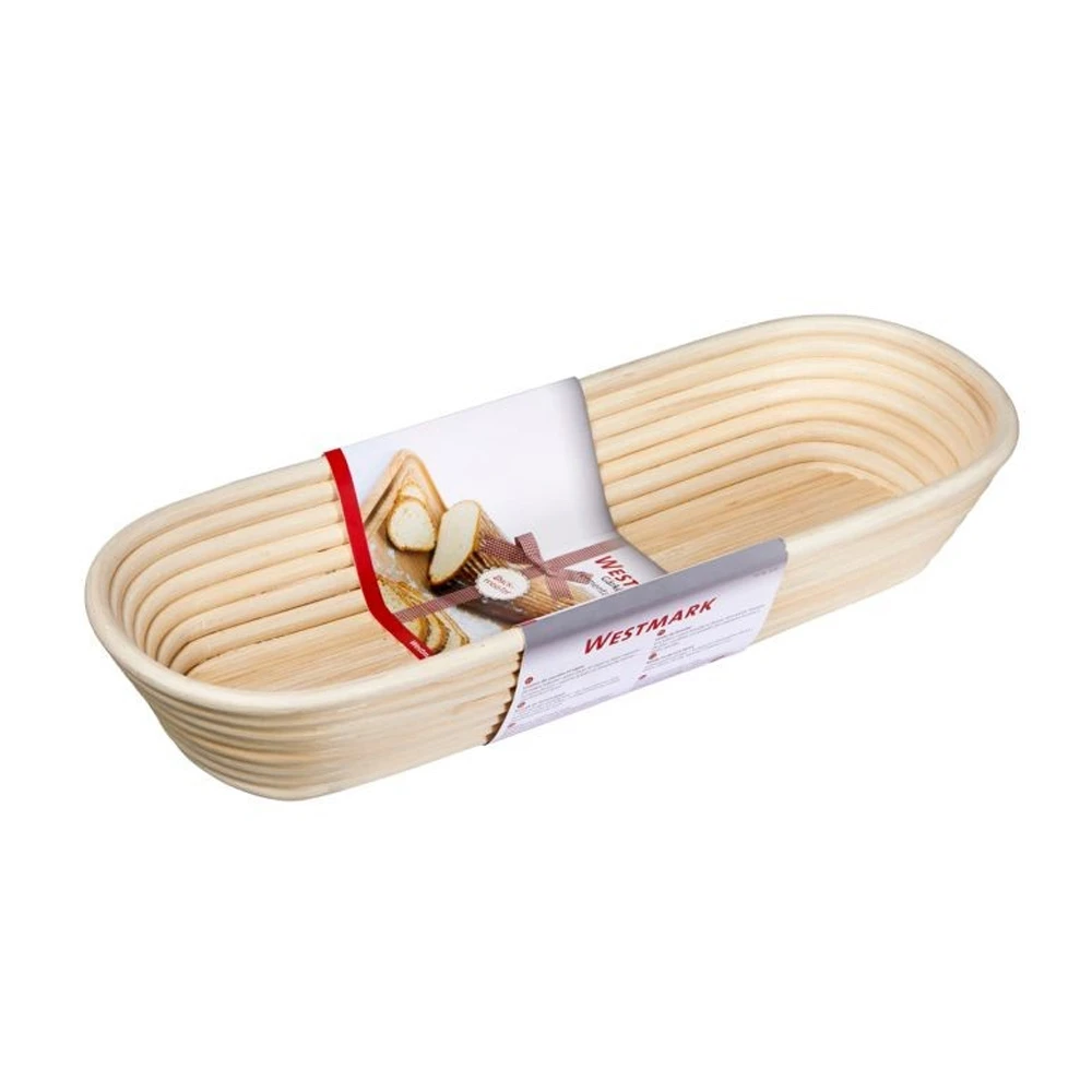 Das ovale Gärkörbchen von Westmark dient dem Ruhen und Aufgehen von Brotteigen und ist für alle Brotteigsorten – wie zum Beispiel Roggenmisch- oder Sauerteig – bestens geeignet. Es besteht aus 100% natürlichem Peddigrohr, einem geruchlosen Naturmaterial, und bietet optimale Gärbedingungen für selbst hergesteltes Brot mit typischem Backmuster. Die ausgewogenen Ruhebedingungen sorgen für perfekte Backergebnisse. Ein klarer Vorteil des Körbchens sind seine nicht freiliegenden Klammern. Diese Tatsache gewährleistet mehr Sicherheit beim Genuss des selbst zubereiteten Brotes. Feuchte oder klebrige Teiglinge können durch vorheriges feines Bemehlen einfach ausgelöst und gestürzt werden. Die leichte Reinigung kann durch Auspinseln oder Ausklopfen des überschüssigen mehls erfolgen. Dazu lässt es sich auch ideal als Brotkörbchen nutzen. Es ist nicht spülmittel-, spülmaschinen- oder ofengeeignet.